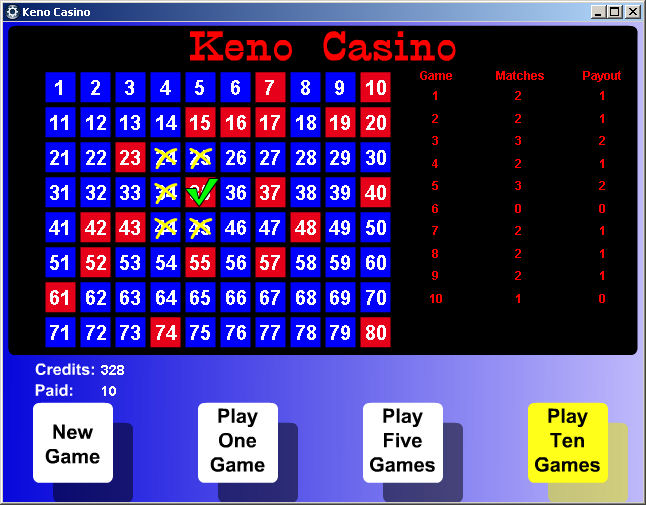 Bonus Keno is a keno game which allows the player to buy additional picks in an attempt to get a higher score and earn more credits. |